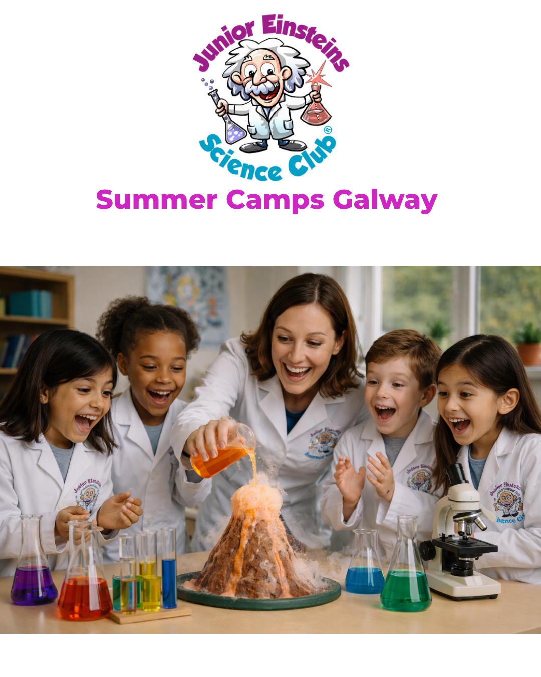 At Junior Einsteins Science Club® Camps, everything we do is driven by one simple idea, children learn best when they are fully engaged, hands-on, and having real fun. Our Science Summer Camps in Galway are designed to be high-energy, interactive, and completely child-centred. Every child who joins us becomes one of our ‘Junior Einsteins’.
