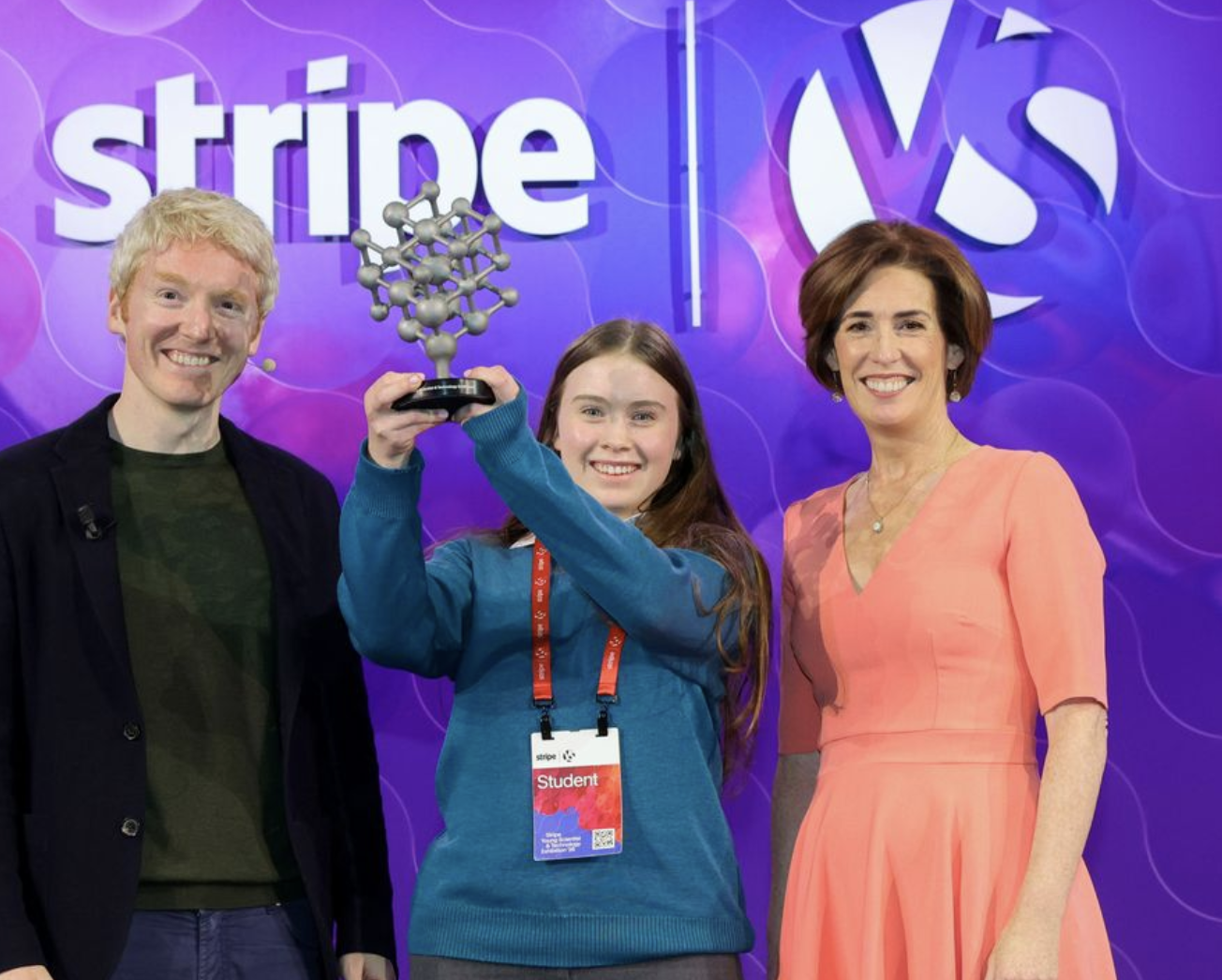 She is fifteen. Take that in for a second. She walked away with €7,500, a very heavy trophy, and will now represent Ireland at the EU Young Scientist competition in Germany.